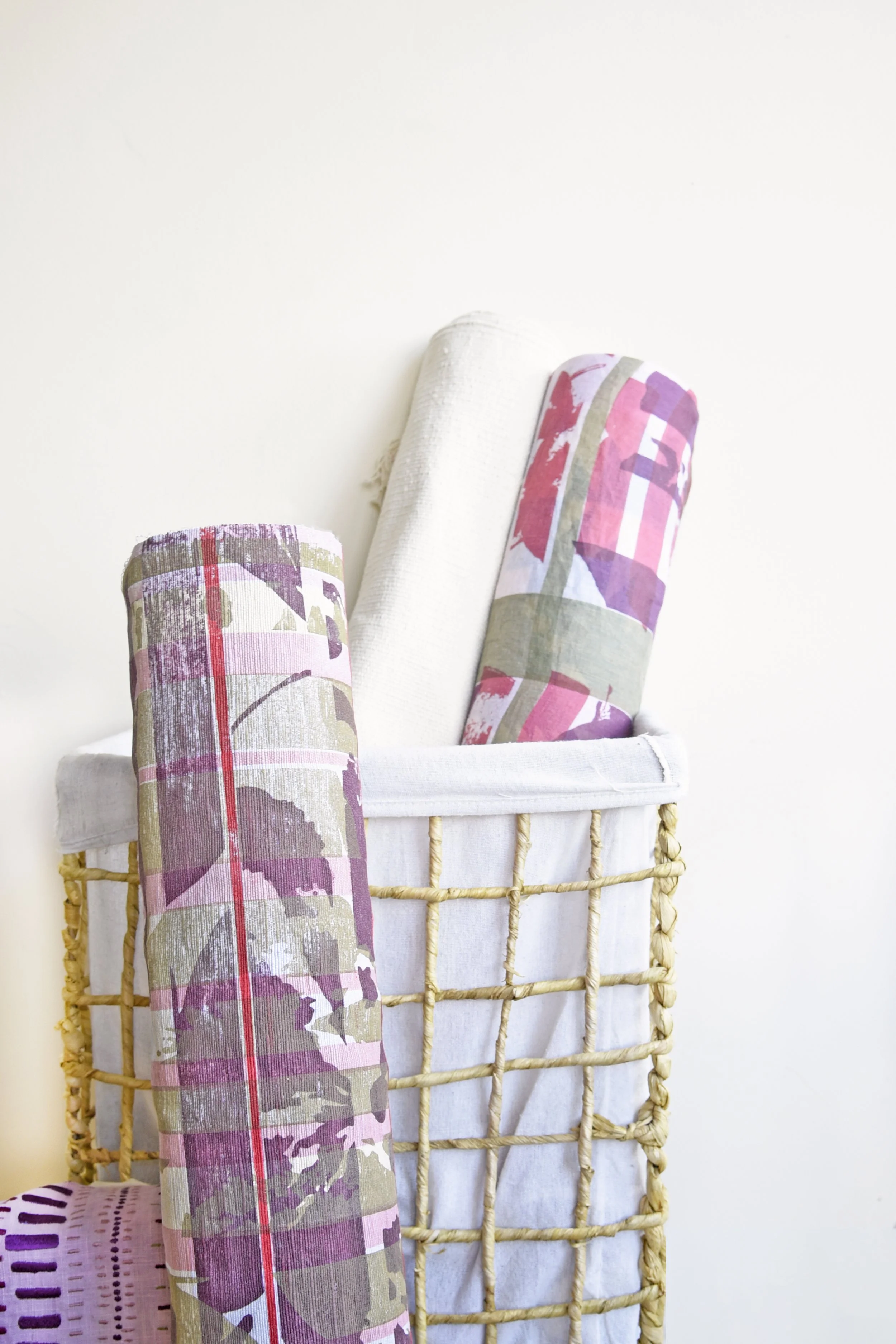 A considered collection of hand printed and embroidered textiles, combining colour and shape to create ambiance. Drawing from florals and plants of the British landscape for inspiration, the collection celebrates the joy of nature, dedicated to brightening the interiors of yoga studios.